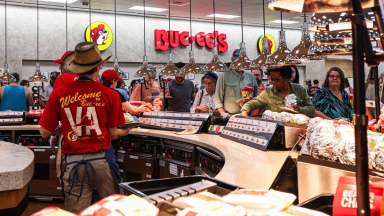 Its locations are designed as destination stops rather than traditional gas stations. In addition to dozens of gas pumps and electric vehicle chargers, Buc-ee’s stores feature expansive retail spaces offering fresh food, snacks, apparel, home goods, and branded merchandise.